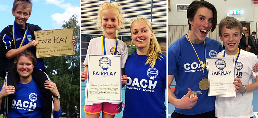 Stora som små uppmuntras under lägerveckan att vara justa idrottsmänniskor och ett föredöme för andra = Fair Play. Isabelle och Viktor är två av de lägerdeltagare som vunnit Stockholm Sport Academy’s Fair Play pris. Utöver äran och diplom tilldelas vinnaren även en helt ny, fri lägervecka
